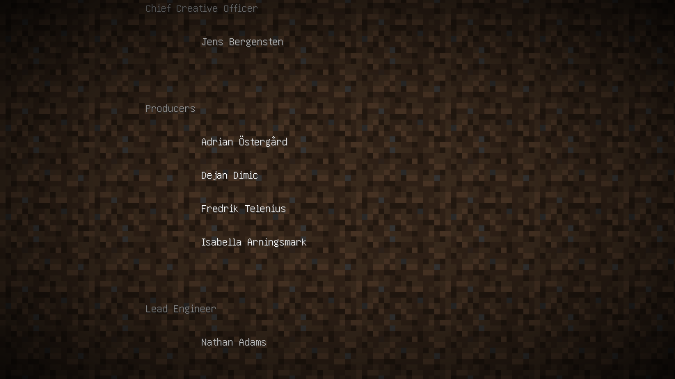 크레딧 목록이 Mojang 직원을 더 포함하도록 업데이트 되었습니다.