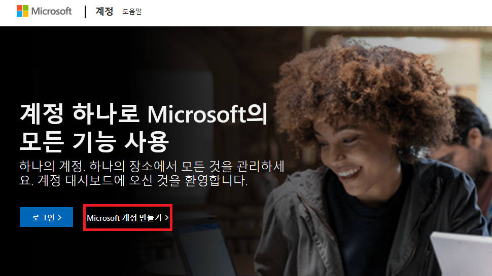 1. account.microsoft.com에 들어가 Microsoft 계정 만들기를 누릅니다.