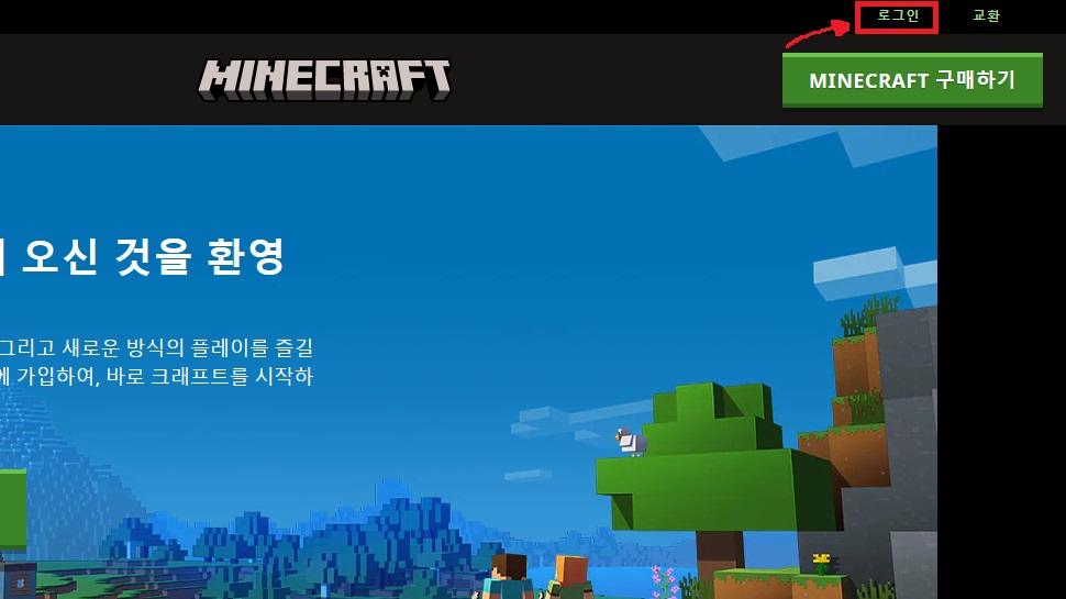 1. minecraft.net으로 들어가 오른쪽 상단의 로그인을 누릅니다.
