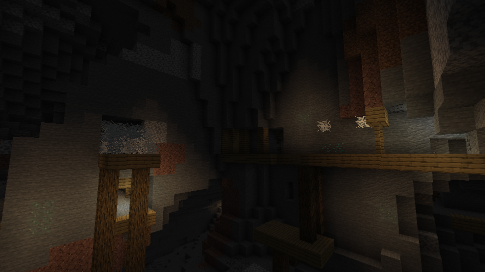 이제 공중에 완전히 떠 있으면 조각으로 생성되지 않으며, 복도는 필요한 경우 아래에 나무 기둥이 생성됩니다. 거미줄 또한 공중에 생성되지 않습니다.