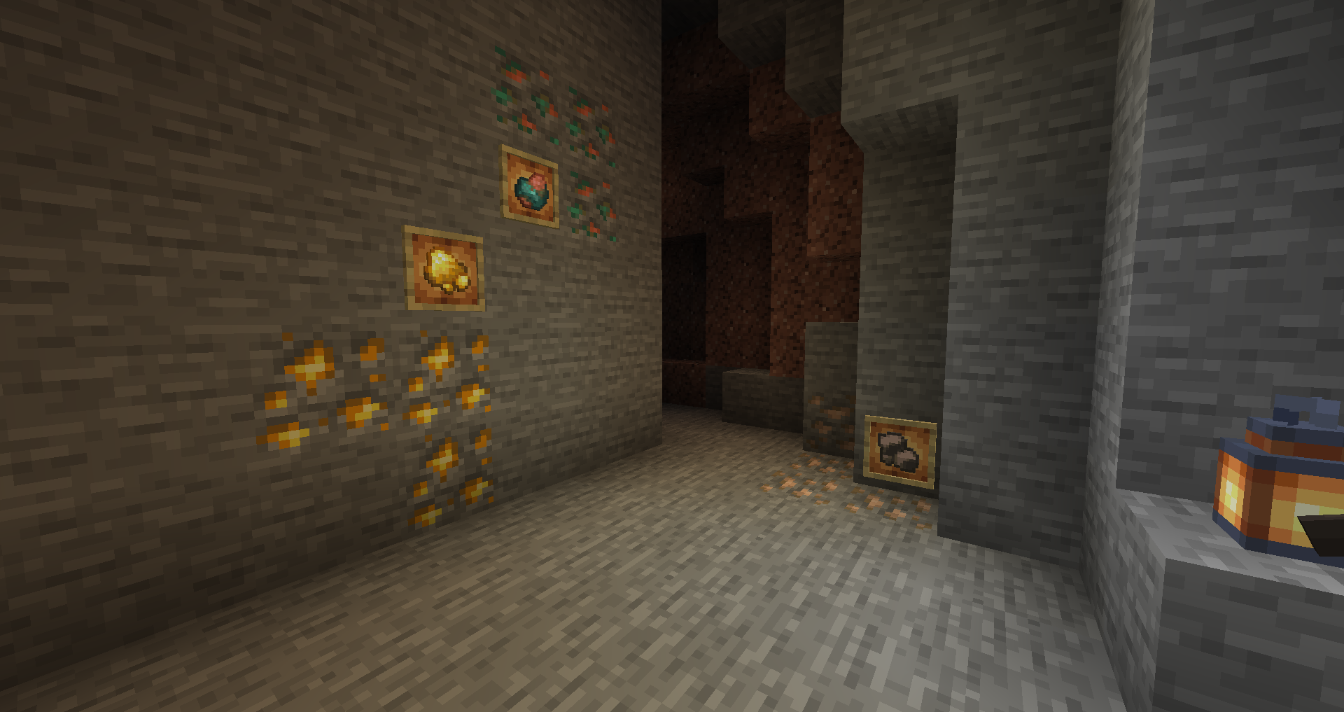 이제 철광석, 구리 광석, 금광석을 채굴하면 광석 블록이 아닌 가공되지 않은(Raw) 형태의 광석으로 떨어뜨립니다.