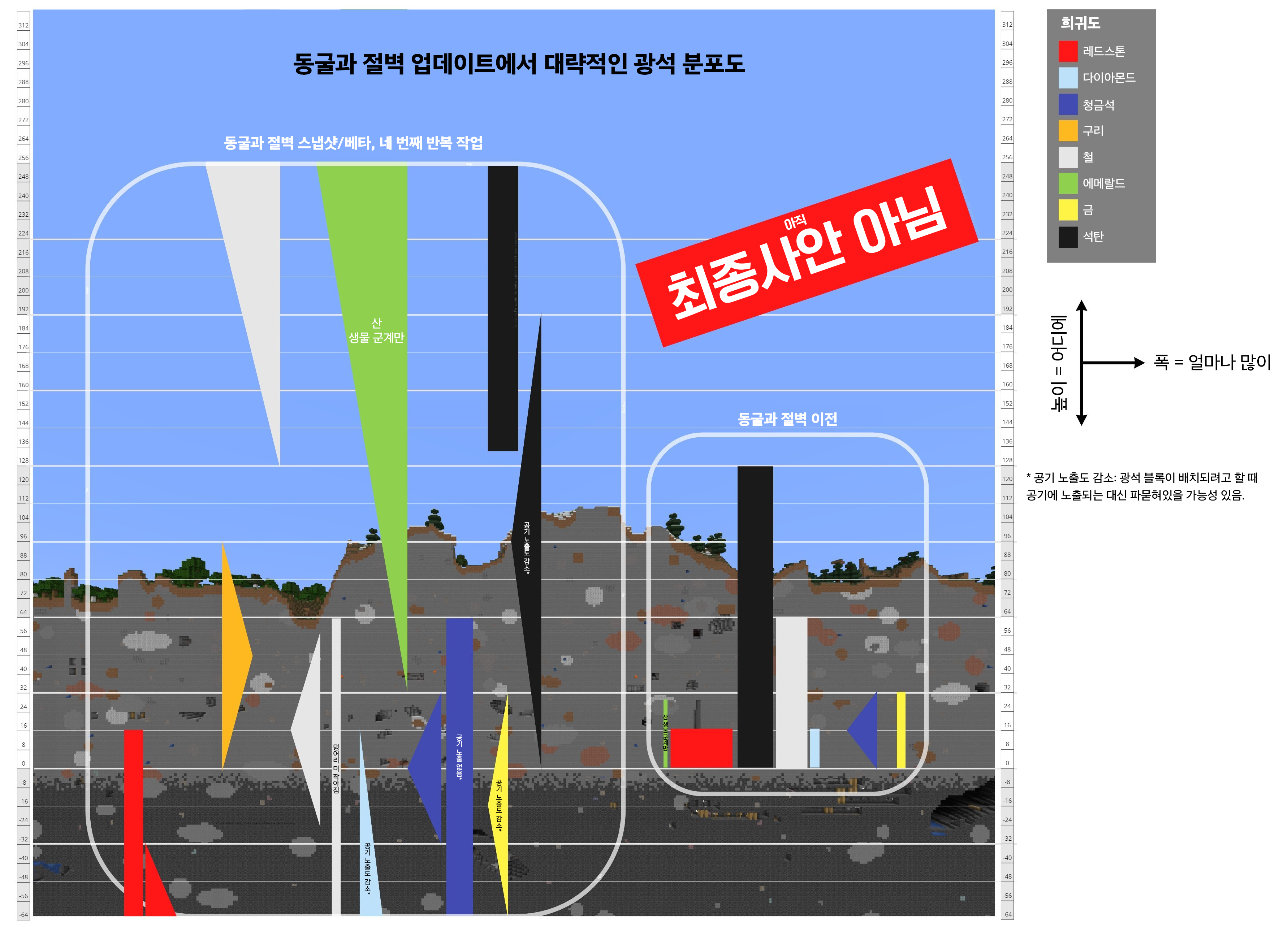 여기! 저것 좀 보세요! 다시 수요일입니다. 즉, 모든 마인크래프트 잡동사니(bits and bobs)에 대한 업데이트를 공유하게 됩니다. 이번 주에는 멋진 스냅샷 전문가 여러분 모두를 위해 광석 분포 스냅샷을 배포합니다. 즐겨주세요!