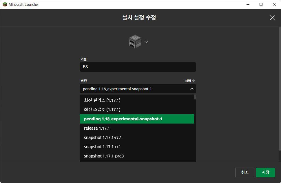 - 버전을 pending 1.18_experimental-snapshot-2로 변경합니다.