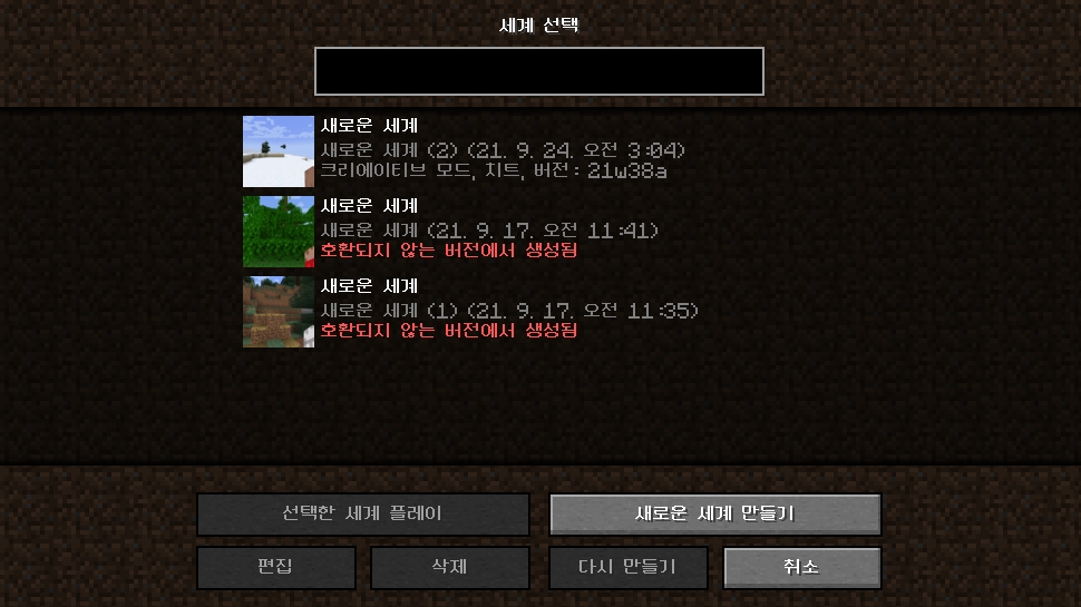 - 높이 확장 등으로 인해 이전 버전(실험용 스냅샷, 21w37a 포함)에 만들어진 세계는 비활성화되어 플레이가 불가능합니다. 추후 스냅샷에서 다시 활성화될 수 있지만 해당 스냅샷 버전에 만든 세계를 이전 버전에서 플레이할 경우 완전히 새로 만들어지거나 손상될 수 있습니다.