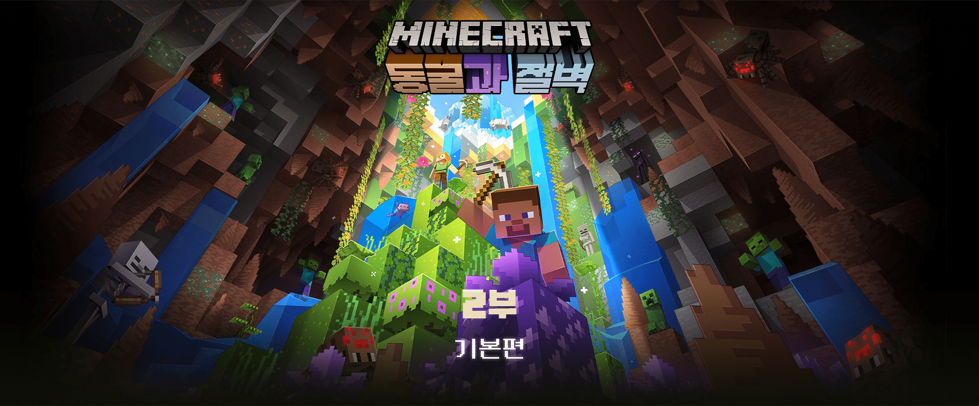 * 동굴과 절벽 업데이트 로고 한글화는 여기를 눌러 내려받을 수 있습니다.