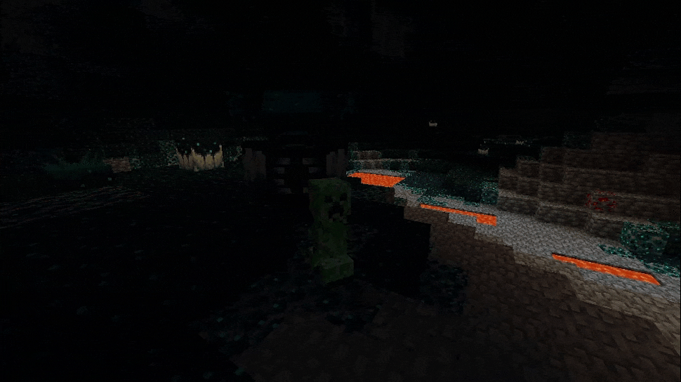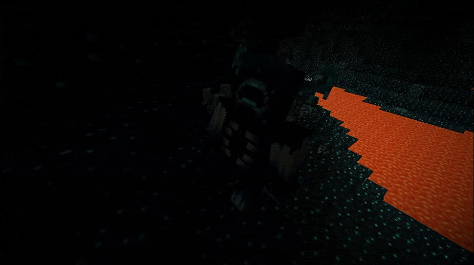 플레이어는 워든 주위에 있으면 시야가 어두워지고, 워든은 앞을 볼 수는 없지만 스컬크 감지체처럼 진동을 주변 환경을 탐색하는 수단으로 사용합니다.