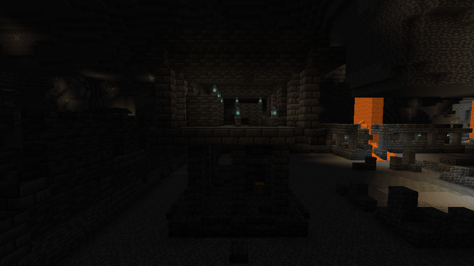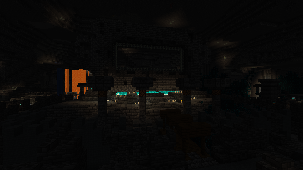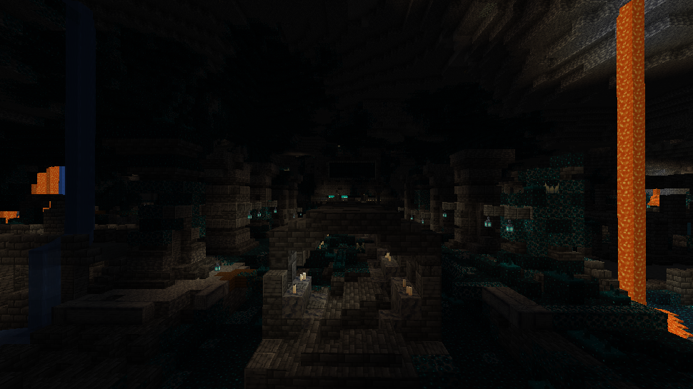 깊은 어둠 생물 군계에서 생성되는 대부분 심층암 벽돌로 이루어진 거대한 구조물로, 깊은 어둠 실험용 스냅샷에서 본 것보다 더 많은 요소들이 추가되었습니다.