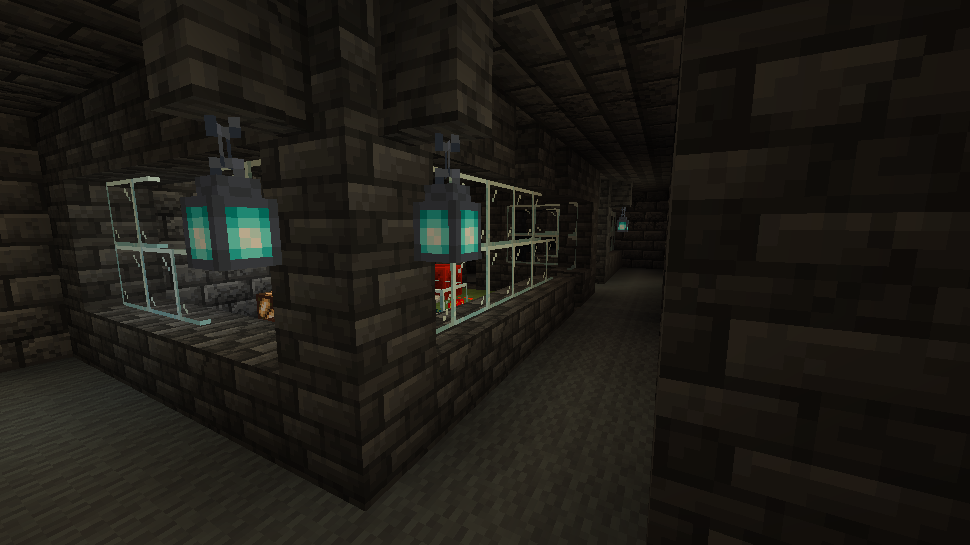 중심부 내부에 지하실이 추가되었는데, 레드스톤 흔적과 독서대, 과녁 등이 있는 것을 보아 아마도 실험실로 추청됩니다.