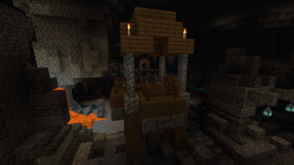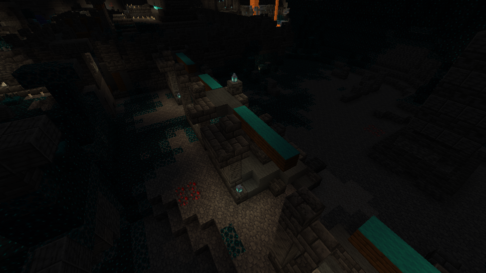 깊은 어둠 생물 군계에서 생성되는 대부분 심층암 벽돌로 이루어진 거대한 구조물로, 깊은 어둠 실험용 스냅샷에서 본 것보다 더 많은 요소들이 추가되었습니다.