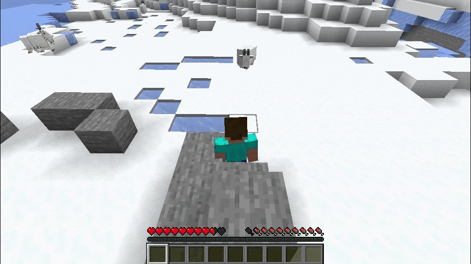 이제 갑옷을 입거나 방패로 막아도 우회(피해량 변화 없음)되며, 그 대신 피해량이 30(하트 15개)에서 10(하트 5개)으로 줄어들었고, 재공격 쿨타임 또한 5초에서 2초로 줄어들었습니다.