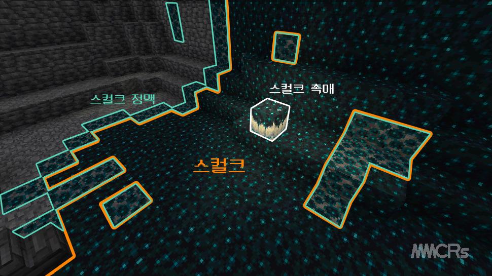 스컬크 촉매로 인해 주변 블록이 스컬크로 부패될 때 가장자리에 생성되는 블록입니다.