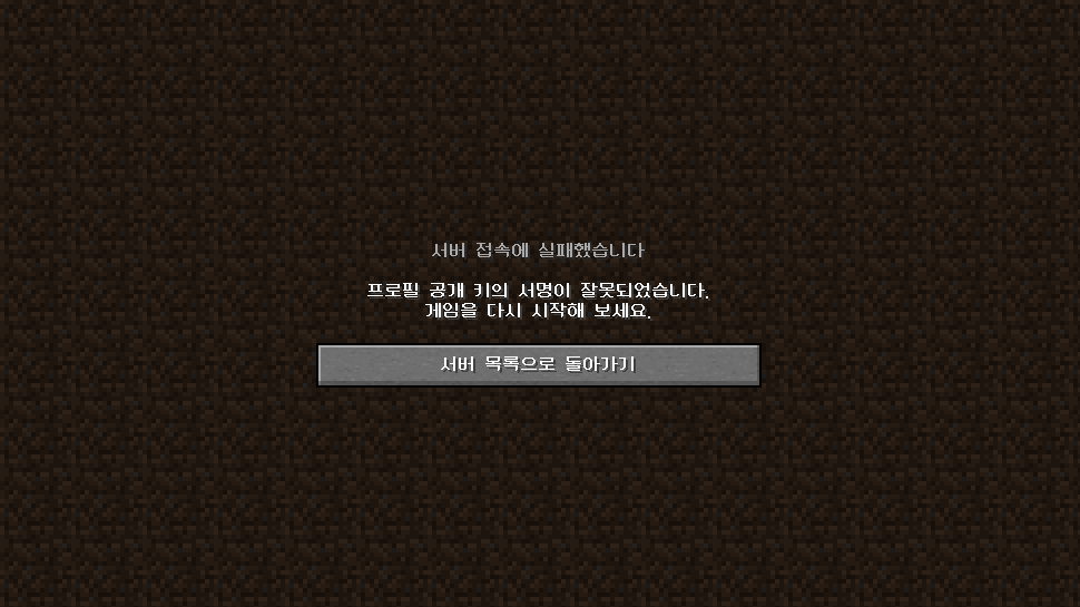 프로필 공개 키의 서명이 잘못되었습니다.때문에 온라인 플레이어가 오프라인 서버에 연결할 수 없음.