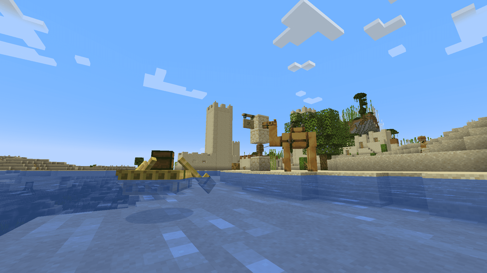 낙타는 사막 마을에서 자연적으로 1마리 생성되는 키 크고 탑승 가능한 동물이며, 말이나 라마처럼 안장을 씌울 수 있고, 다른 탈것들과 다르게 보트처럼 2명이 탈 수 있습니다.