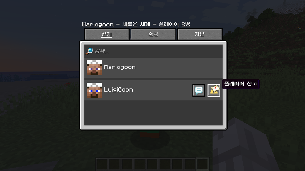 플레이어 신고 화면에서 나갈 때 신고 내용을 삭제하거나 임시 저장할 수 있습니다. 사망 등을 이유로 화면을 강제로 닫았다면 임시 저장은 항상 유지되며, 임시 저장된 내용은 플레이어가 서버 또는 세계를 떠날 때까지 보관됩니다.
