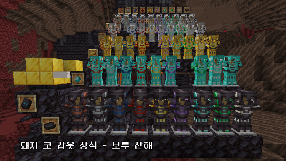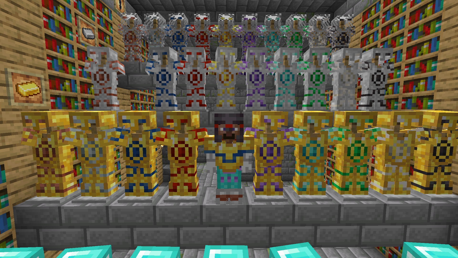 색 팔레트를 사용하면 리소스 팩의 텍스처 변형에 대한 모든 파일을 제공하지 않고도 텍스처 색을 바꿀 수 있습니다. 이는 각각의 색에 대해 새로운 텍스처를 만들지 않고도 갑옷 부분의 색을 바꿀 수 있는 갑옷 장식과 같은 경우에 유용합니다.