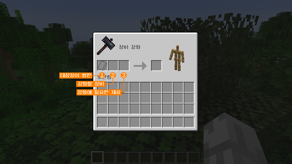 으로 이름이 변경되었으며, 현재의 대장장이 형판 슬롯이 있는 새로운 메뉴는 smithing