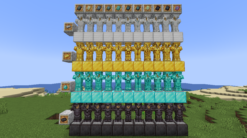 네더라이트 강화 유형의 대장장이 형판은 이제 두 배로 흔해졌으며, 벡스 갑옷 장식 유형의 대장장이 형판도 삼림 대저택의 노획물 상자에서 얻을 수 있는 확률이 크게 증가되었습니다.