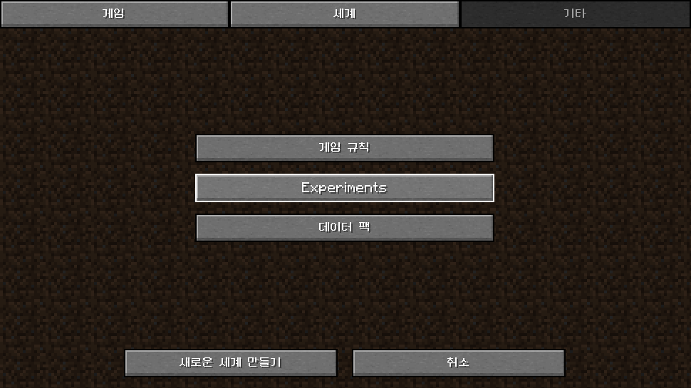 으로 표시됩니다. - 기존 세계는 실험적 기능(데이터 팩)을 사용할 수 없습니다. 단, 이전에 해당 실험적 기능을 적용한 경우 업데이트된 실험적 기능도 사용 가능합니다.