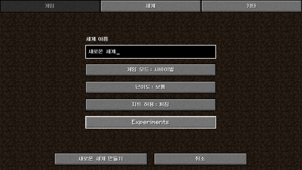 실험적으로 표시됩니다. - 기존 세계는 실험적 기능(데이터 팩)을 사용할 수 없습니다. 단, 이전에 해당 실험적 기능을 적용한 경우 업데이트된 실험적 기능도 사용 가능합니다.