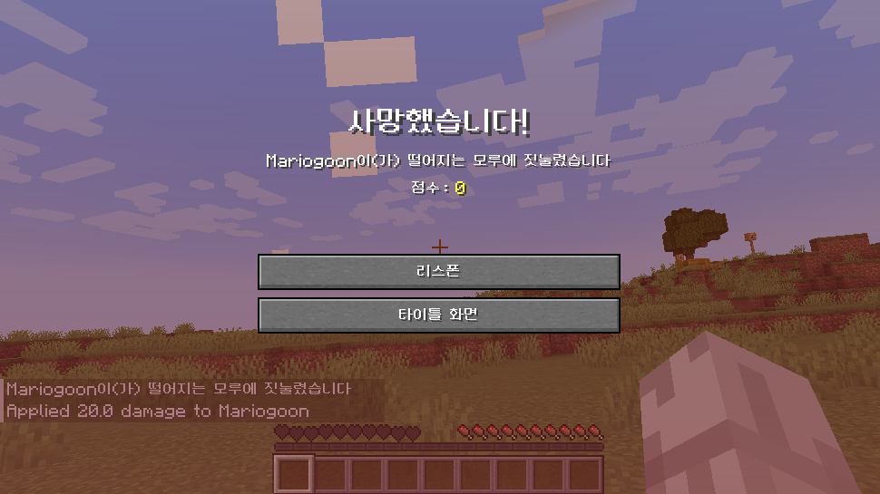 - 일반 사망 메시지 대신 의도적인 게임 디자인 메시지 표시