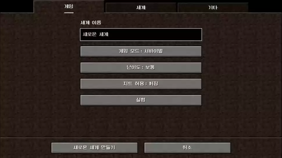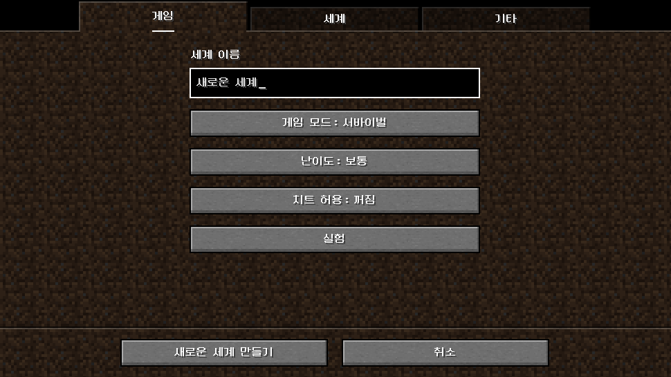 실험적으로 표시됩니다. - 해당 기능을 적용한 후 세계를 만든 뒤에는 나중에 해제할 수 없습니다.