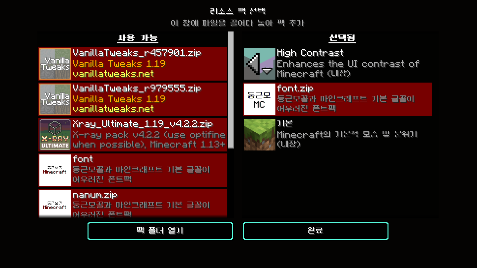 고대비(High Contrast) 리소스 팩이 게임에 내장되었습니다.