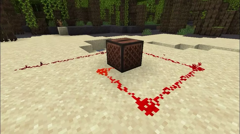 이제 음반을 넣고 재생하면 그 위에 음표 입자를 방출하며, 15 정도의 레드스톤 신호를 방출합니다.