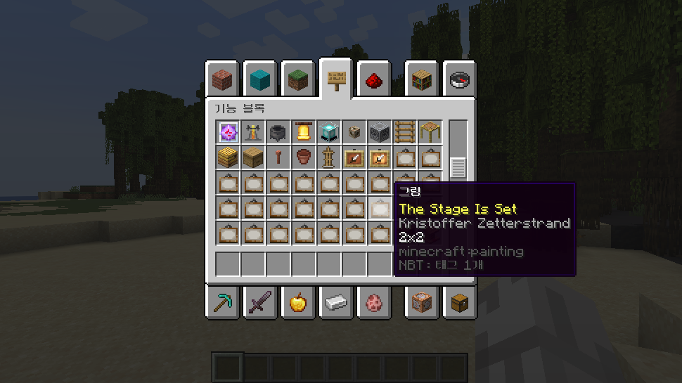 이제 기능 블록 탭을 통해 서바이벌에서 무작위로 얻을 수 있는 모든 종류의 그림을 찾을 수 있습니다.