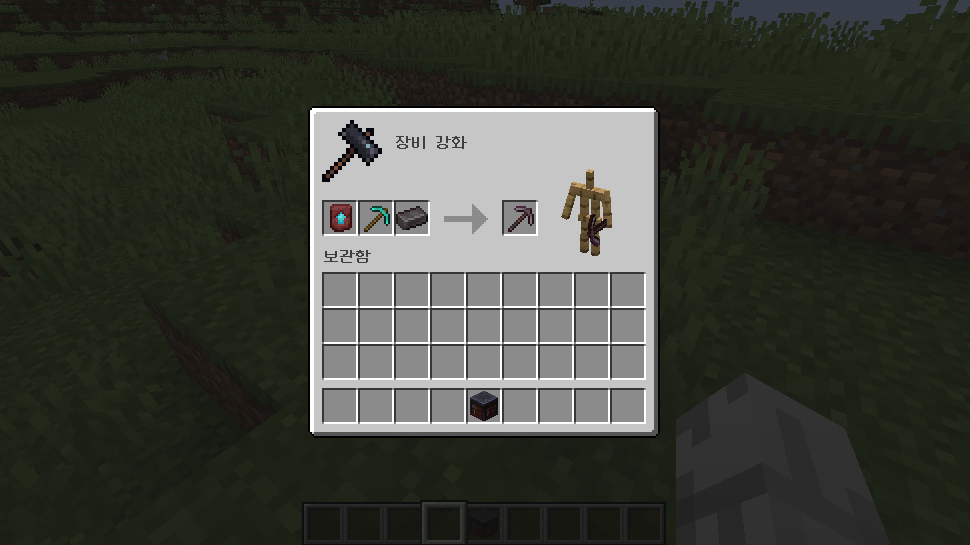 이제 다이아몬드 장비를 네더라이트 장비로 강화하려면 네더라이트 주괴는 물론 네더라이트 강화 유형의 대장장이 형판이 추가로 필요합니다.